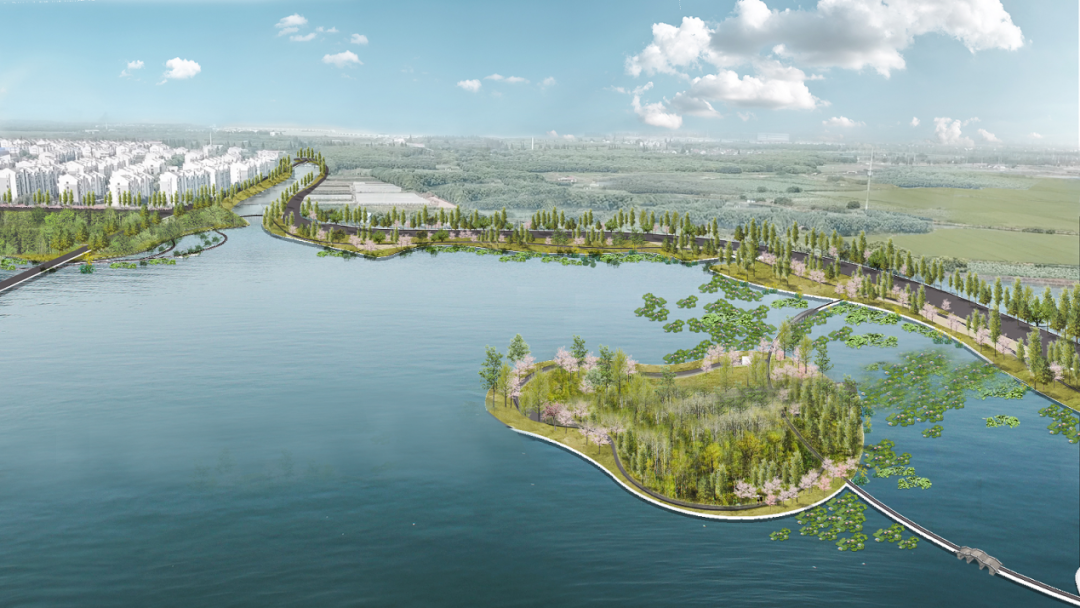 西洋淀原是湖荡,后因历史原因成为水产养殖基地。工程提出退渔还湖还湿措施,恢复历史风貌,重塑水下地形,营造多样生境,促进生物多样性恢复。同时,依现状高地设岛,用连岛桥连通,形成湖中有岛、岛中有湖的格局,在净化水质的同时打造优美水景观。