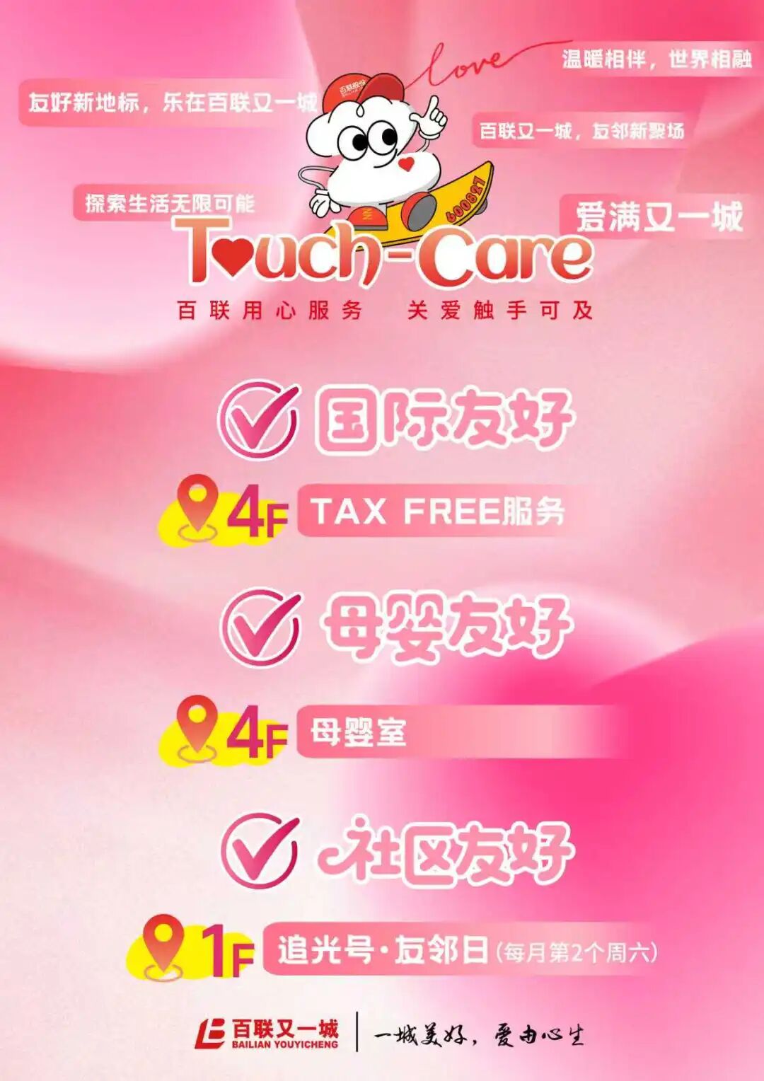 服务有温度,美好常相伴。百联股份在今后将继续深化Touch-Care特色服务品牌内涵,不断迭代服务标准,推广标杆门店建设经验,以更具温度、更富特色的服务,持续创造你身边的美好生活。