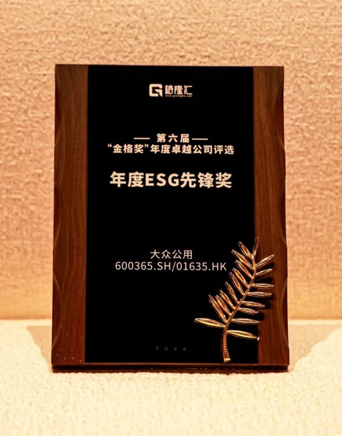近日,第九届"格隆汇·全球投资嘉年华·2025"于深圳盛大开幕。在其"金格奖"年度卓越公司评选中,大众公用荣获评"年度ESG先锋奖。