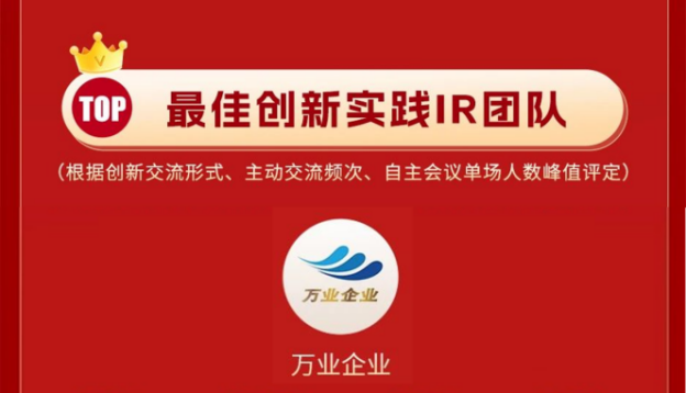 近日,国内领先的投资服务平台——进门财经发布了2023年度最佳IR团队评选结果。在此次评选中,万业企业(600641)以其持续创新的投资者沟通策略和投关工作成果,荣获了“年度最佳创新实践IR团队”奖项。