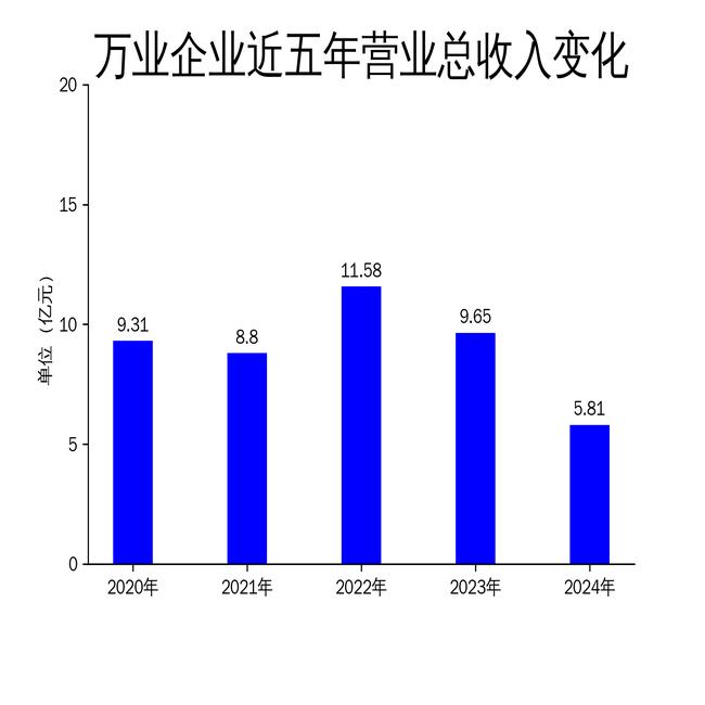 2024年,万业企业的营业总收入从2023年的9.65亿元大幅下降至5.81亿元,同比下降39.72%。这一下滑主要受到地产业务收缩和市场竞争加剧的影响。尽管公司加快了向半导体设备和材料业务的转型,但短期内仍未能完全抵消传统业务的下滑压力。