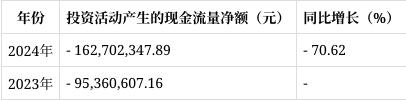 投资活动产生的现金流量净额为- 162,702,347.89元,2023年为- 95,360,607.16元,降幅达70.62%。主要原因是去年同期收到土地收储款,而本年度无此项收入。投资活动现金流量净额的大幅下降表明公司在投资方面的现金支出增加,可能对公司的资金状况产生压力,公司需合理规划投资活动,确保资金的有效配置。