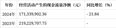 经营活动产生的现金流量净额为171,339,902.36元,较2023年的219,229,707.75元下降21.84%。主要原因是报告期内保函保证金支出增加,导致现金流出增多。经营活动现金流量净额的下降可能影响公司的资金流动性和日常运营,公司需要关注保证金管理,优化资金安排。