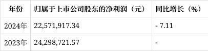 归属于上市公司股东的净利润为22,571,917.34元,相较于2023年的24,298,721.57元,下降了7.11%。净利润下滑的原因主要是公司营业成本上升,以及非经常性损益的影响。2024年营业成本为2,690,497,119.48元,较上年增长7.72%,成本的增长幅度超过了营收的增长幅度。同时,非经常性损益对净利润也产生了一定影响,如2024年非经常性损益合计为15,750,697.02元,而2023年为11,368,431.93元,非经常性损益的波动对净利润造成了一定的扰动。