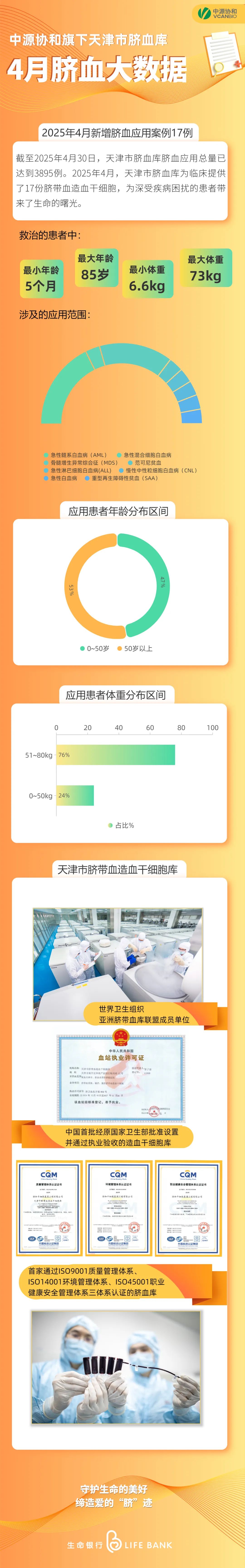 脐血大数据 | 中源协和旗下天津市脐血库脐血应用总量已达3895例