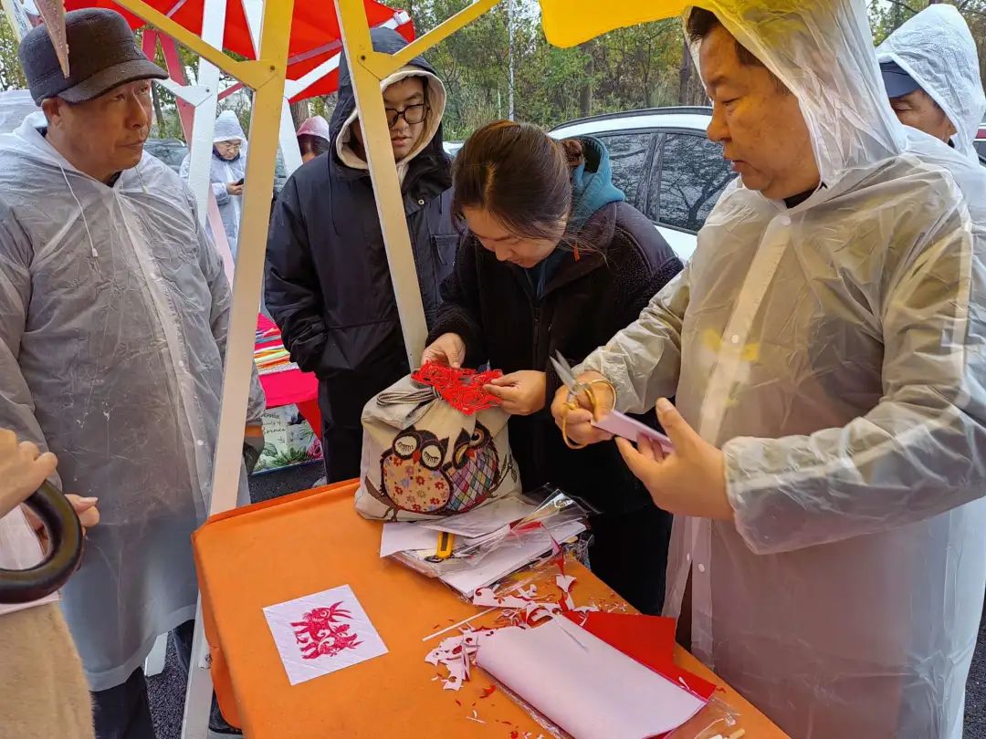 集市上不但有土产品摊位,还特邀民间非遗文化传承人现场表演剪纸、糖画、捏泥人手艺,人们聚集在摊位前,目不转睛盯着一幅幅活灵活现的动物、花卉图案在手腕转动间呈现于眼前,大家不时发出阵阵喝彩。