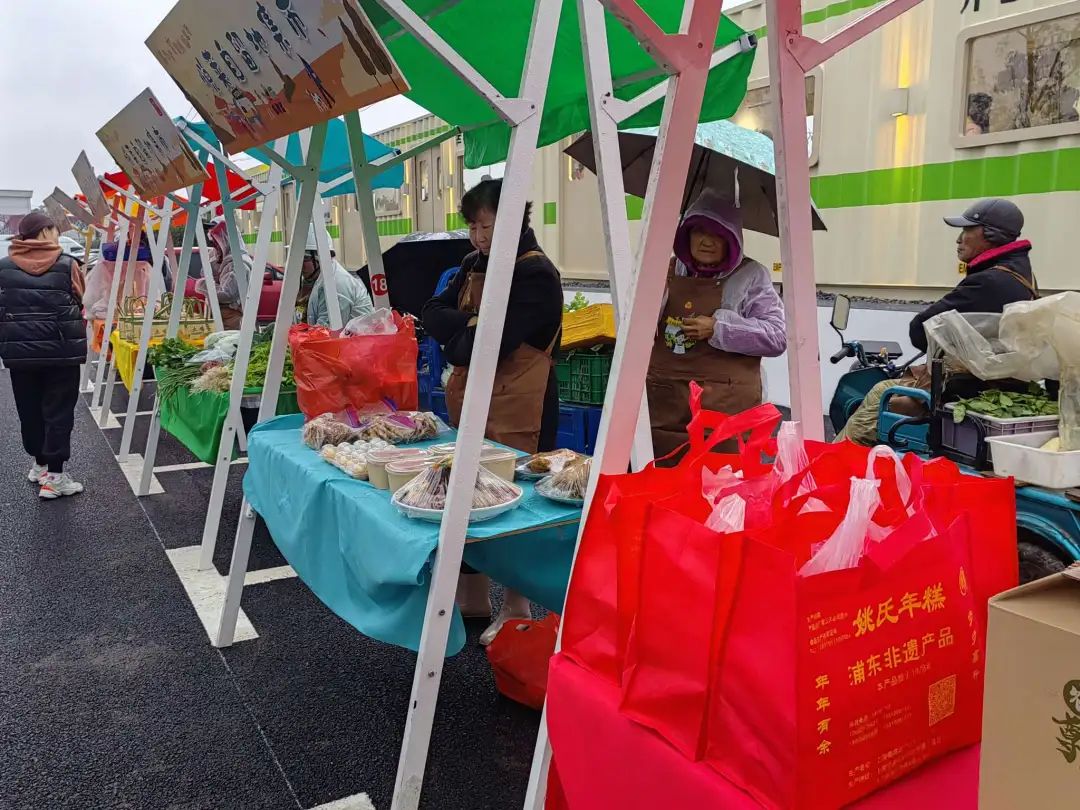 田头刚刚采摘的当季蔬菜、上月收割的新稻米、村民种植的“红美人”桔子以及非遗产品姚氏年糕等,这些充满乡土气的农产品在新建成的祝桥镇新营村观光农田悦莱溪谷旁组成了一个集市,让“赶集人”一边感受广阔田野自然气息,一边品尝地道乡村美食。