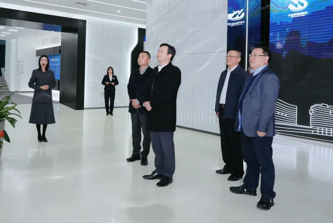 区领导走进展厅察看了解集团发展历程、业务布局等情况,并与集团班子成员座谈交流,听取集团围绕“聚主业、提能力,加快向投资控股集团战略转型”的工作汇报。