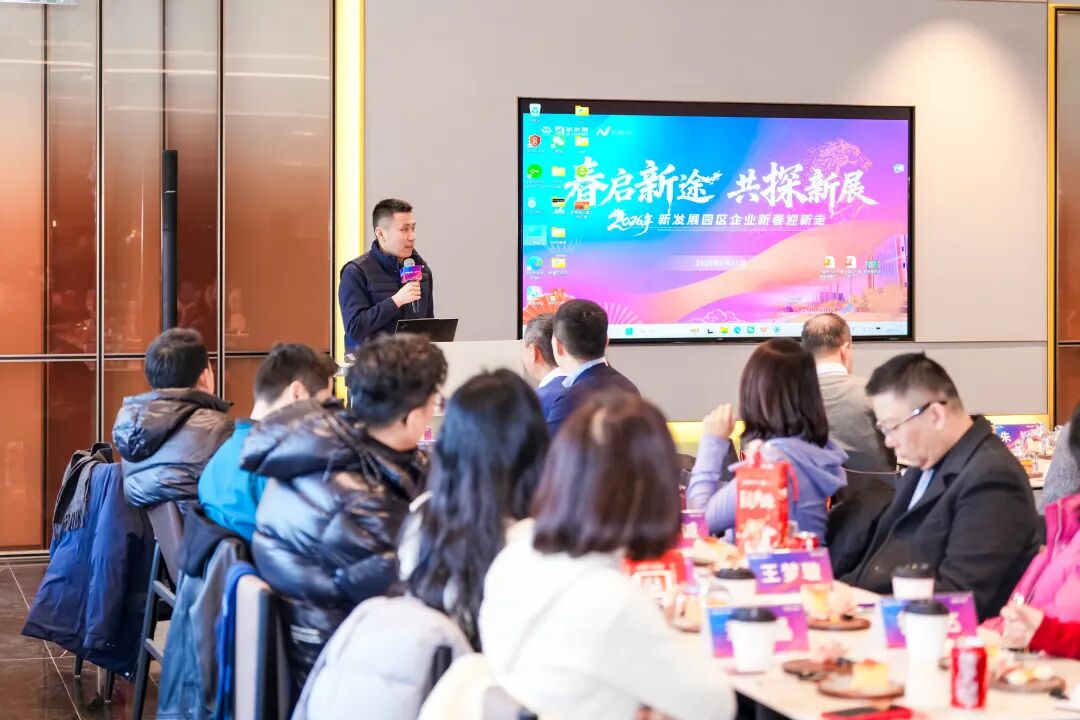 外高桥集团副总经理、新发展公司董事陈斌在活动中致辞,回顾了2025年外高桥新展城在机遇与挑战并存中交出的亮眼答卷——龙头企业与创新型主体加速集聚,为区域发展注入澎湃活力;多层次人才居住配套体系加速落成,为产城共荣注入新动能。展望2026年,外高桥将以开放之姿拥抱变革,做企业成长的陪伴者,以服务之心赋能伙伴,打造互利共赢生态圈,以创新之志引领发展,书写产城融合新标杆。