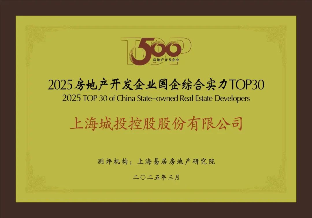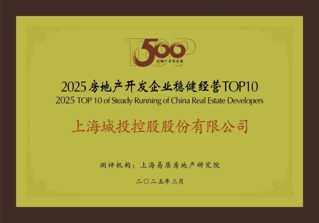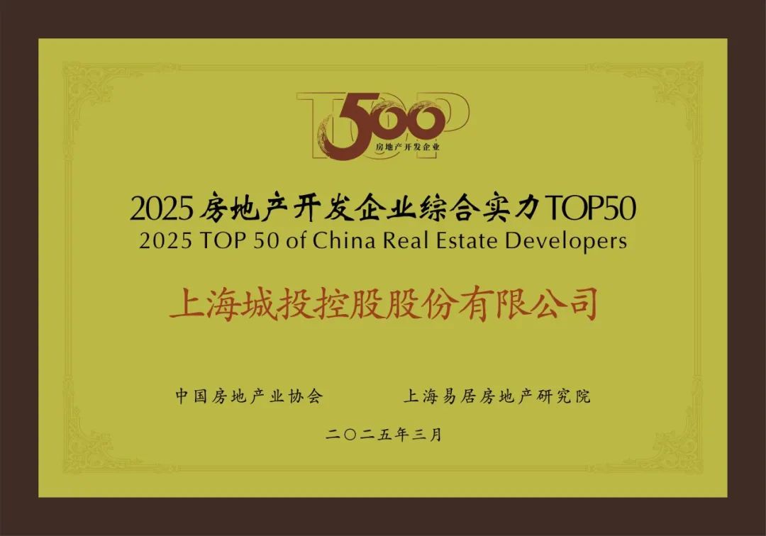 近日,中国房地产协会、上海易居房地产研究院联合发布“2025房地产开发企业综合实力TOP500测评成果”,城投控股蝉联房地产开发企业综合实力TOP50,位列第45名,比去年上升5名,并荣获了2025房地产开发企业稳健经营TOP10、2025房地产开发企业国企综合实力TOP30、2025房地产开发企业创新能力TOP10等专项荣誉。