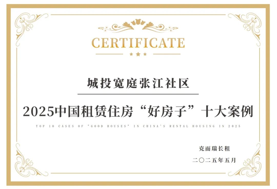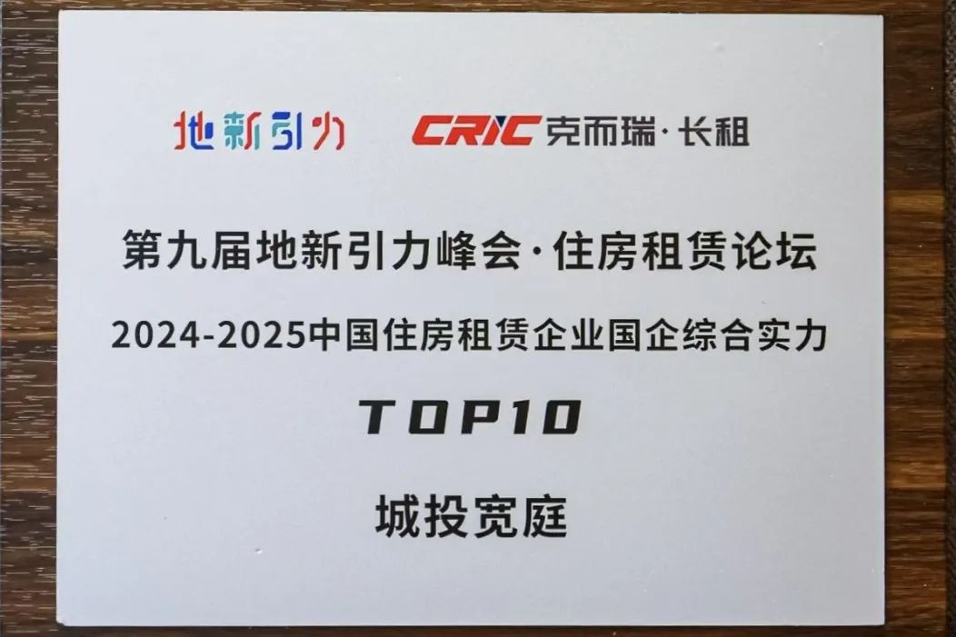 5月21日,在克而瑞长租主办的“2025第九届地新引力峰会·住房租赁论坛”上,城投宽庭凭借全维度、均衡性发展的卓越实力脱颖而出,荣获“2024-2025中国住房租赁企业国企综合实力TOP10”,城投宽庭张江社区荣获“2025中国租赁住房‘好房子’十大案例”。