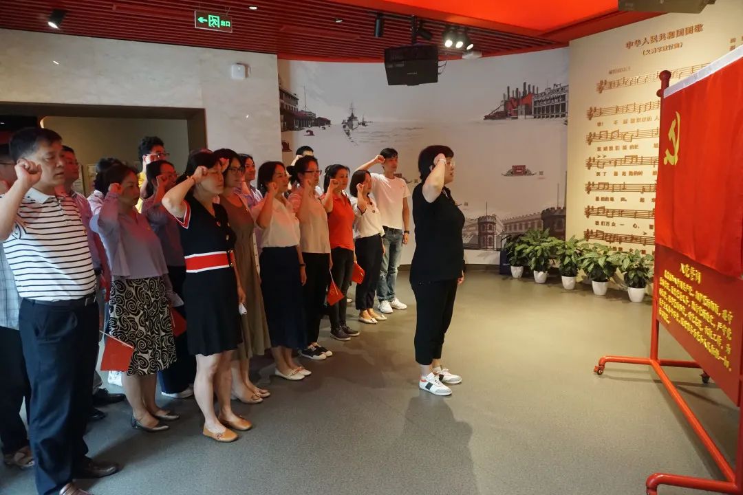 参观完成后,金艳春书记带领全体党员重温入党誓词,在鲜红的党旗下,同志们肃然起敬,郑重举起右手,重温那满含百年血与泪的誓言。全体党员高声呐喊入党誓词,誓言铮铮、声声震耳。