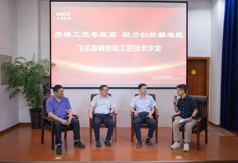 接下来的技术沙龙环节是一场智慧碰撞的盛宴。全国劳动模范宋延勇、上海工匠张怀锁和飞乐音响工匠沈迪,围绕“劳模工匠精神的内核”、“立足主业赋能发展”、“青年人才培养建议”等共性话题,结合各自领域的技术突破、传承创新、降本增效等具体问题,分享了他们的独到见解、宝贵经验和深刻感悟。