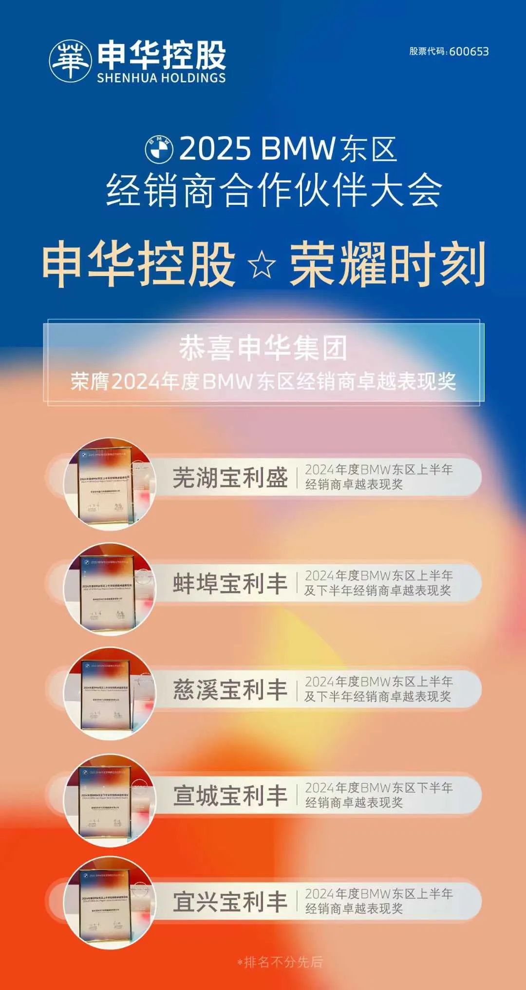 此次申华控股在2025BMW东区经销商合作伙伴盛会上荣获多项殊荣,既是对其过去一年辛勤耕耘和卓越成就的充分肯定,也是激励其未来继续砥砺前行的强大动力。申华控股将不忘初心,勇攀高峰,不断创新和提升,为客户带来更加卓越的服务和体验,为宝马品牌的辉煌发展贡献更大的力量。