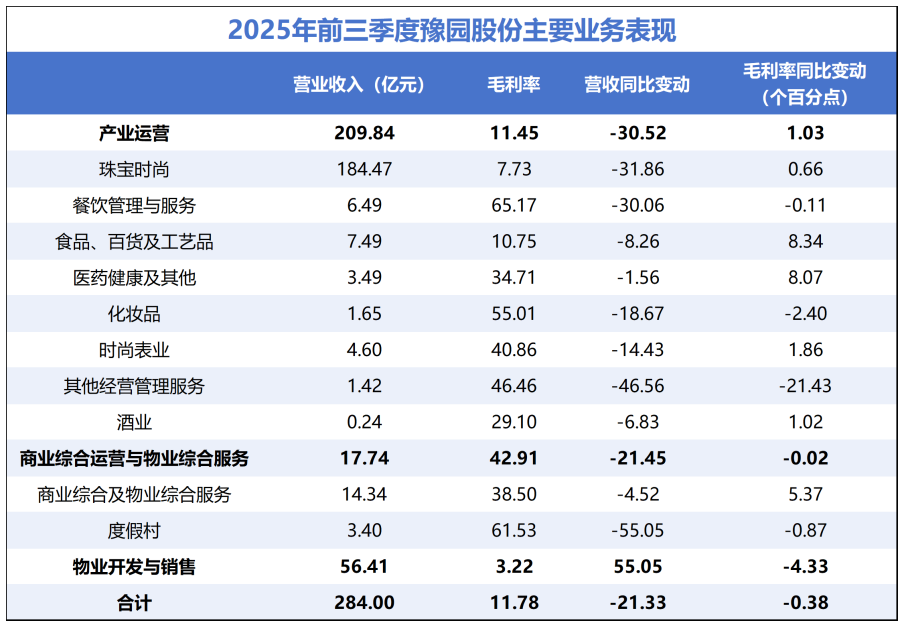 诸多业务中,珠宝时尚与物业开发一直是豫园股份营收占比最高的两项业务,但2025年两项业务均有所承压。