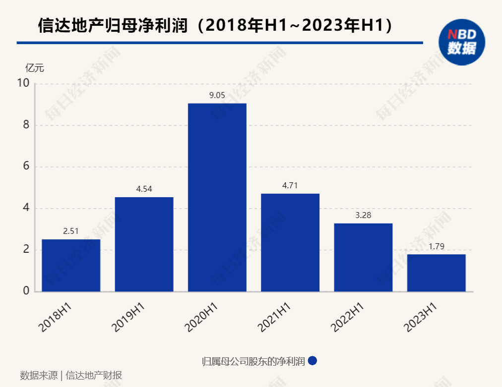 中报显示,上半年信达地产实现营业收入29.37亿元,较上年同期的78.28亿元下降62.49%;实现净利润1.84亿元,较上年同期3.28亿元下降44.06%;实现归属母公司净利润1.79亿元,较上年同期3.28亿元下降45.53%。