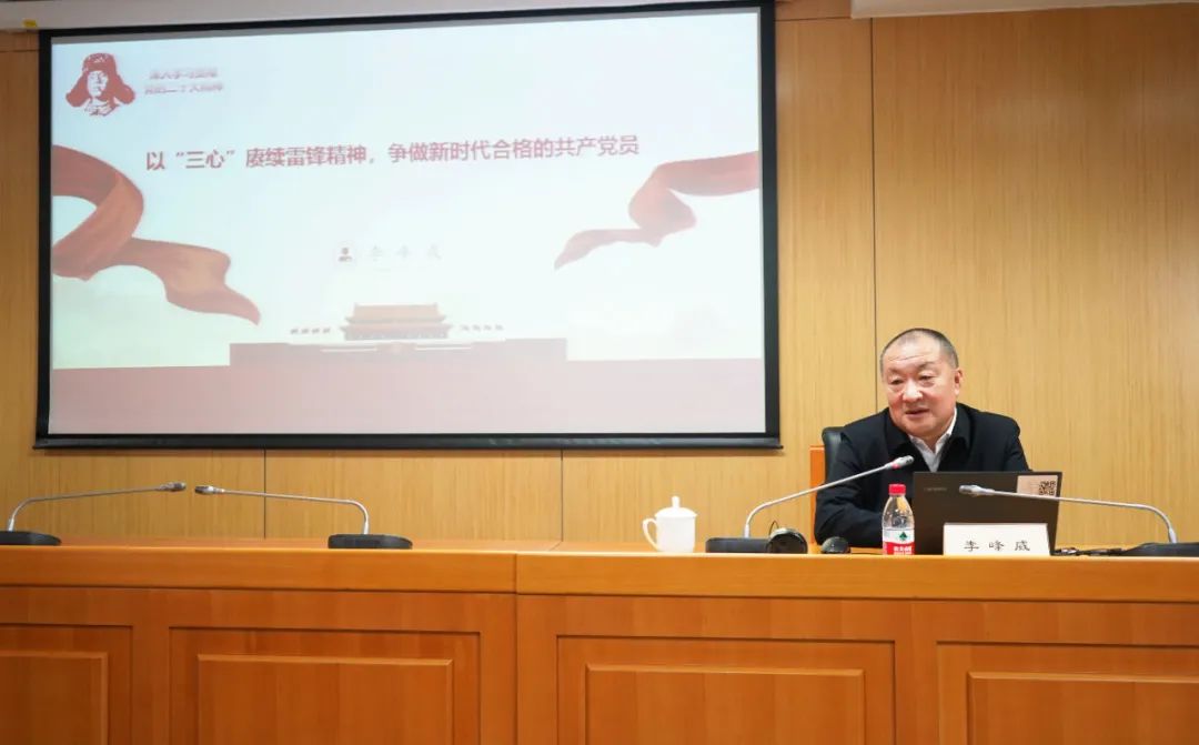 活动邀请全国岗位学雷锋标兵李峰威同志以《以“三心”赓续雷锋精神,争做新时代合格的共产党员》为题,引用感人事迹和生动影像,从一颗“丹心”忠于党的赤诚、一颗“匠心”敬于业的执着及一颗“初心”系于民的情怀等三部分作赓续雷锋精神主题分享。