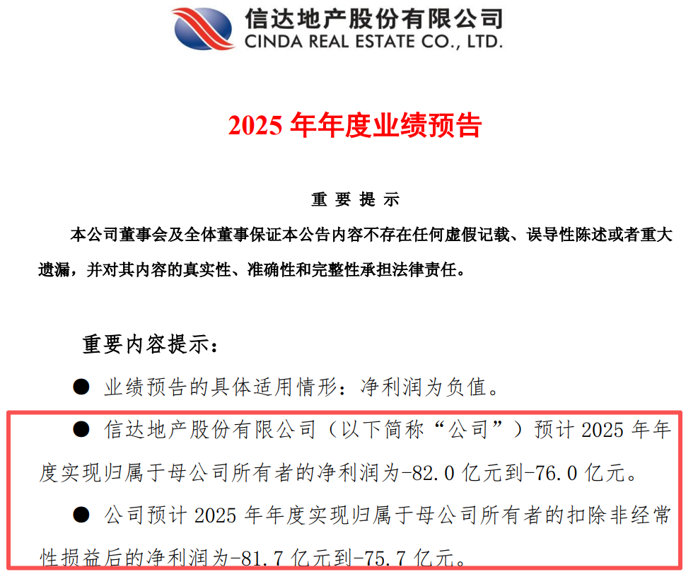 信达地产2025年度亏损有点大啊,是2024年亏损的十倍。