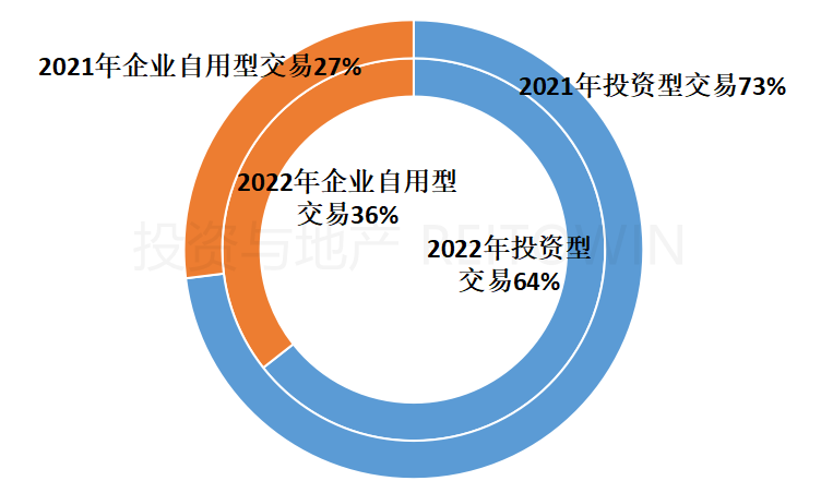 据【投资与地产】的统计数据显示,2022年,商用大宗方面:按成交金额计算,自用型买家占比36%,较去年增长近10%,成交的物业类型主要集中于办公资产。