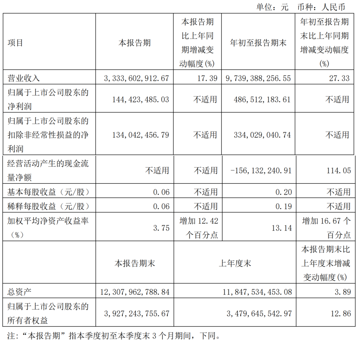 公告显示,哈药股份第三季度营业收入为33.34亿元,比上年同期增长17.39%;归属于上市公司股东的净利润为1.44亿元。