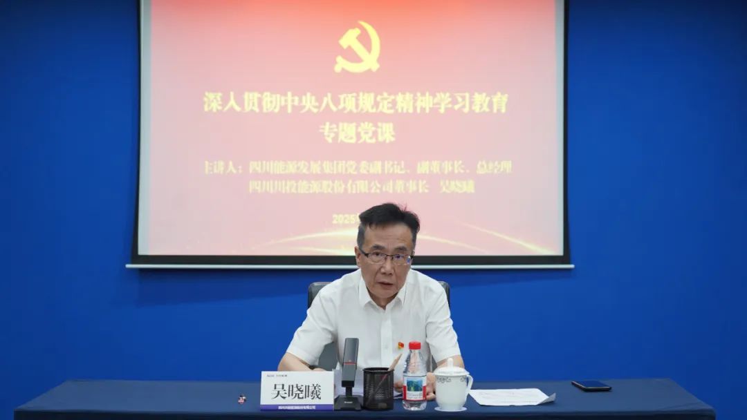 7月16日,四川能源发展集团党委副书记、副董事长、总经理吴晓曦赴川投能源讲授深入贯彻中央八项规定精神学习教育专题党课,围绕加强党的作风建设特别是深入贯彻中央八项规定精神,以“深学笃行强作风踔厉奋发新征程以过硬作风为能源集团改革发展保驾护航”为题,与公司党员交流认识体会,川投能源党委书记、副董事长、总经理杨洪主持。
