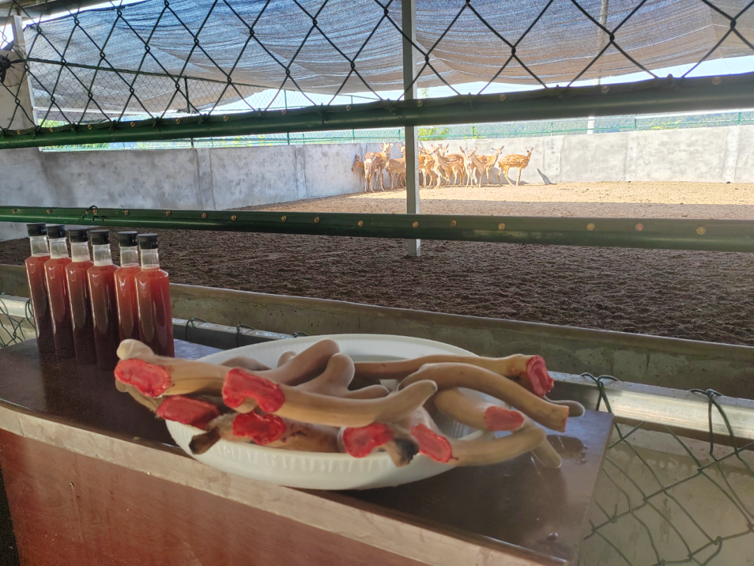 当天上午,插旗山村梅花鹿养殖基地围满了前来的村民,在技术人员的专业指导下,饲养员们规范操作,伴随着鹿茸锯清脆的“咔嚓”声,一对对形如珊瑚、色泽鲜亮的鹿茸应声而落,顺利完成了首批6只梅花鹿的鹿茸收割。