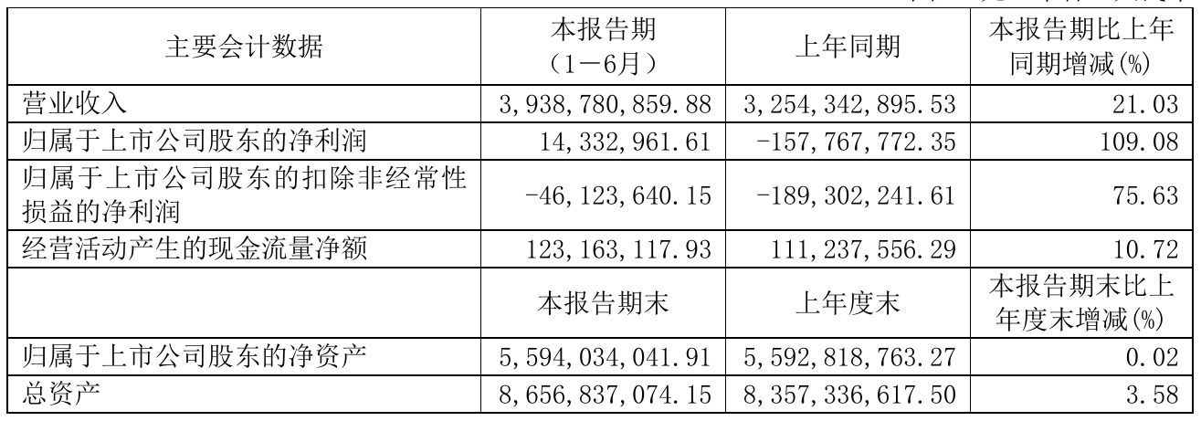 交运股份(600676)近日发布2021年半年度报告,报告期内营业收入3,938,780,859.88元,同比增加21.03%;净利14,332,961.61元,同比扭亏为盈。