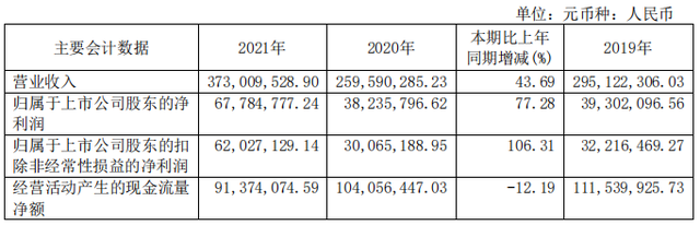 日前,四川金顶披露2021年年报,公司实现营业收入37300.95万元,比上年增加11341.92万元,同比增长43.69%;归属于上市公司股东的净利润6778.48万元,比上年增加2954.90万元,同比增幅77.28%;归属于上市公司股东的扣除非经常性损益的净利润6202.71万元,比上年增长106.31%;加权平均净资产收益率34.62%,比上年提升7.41个百分点。