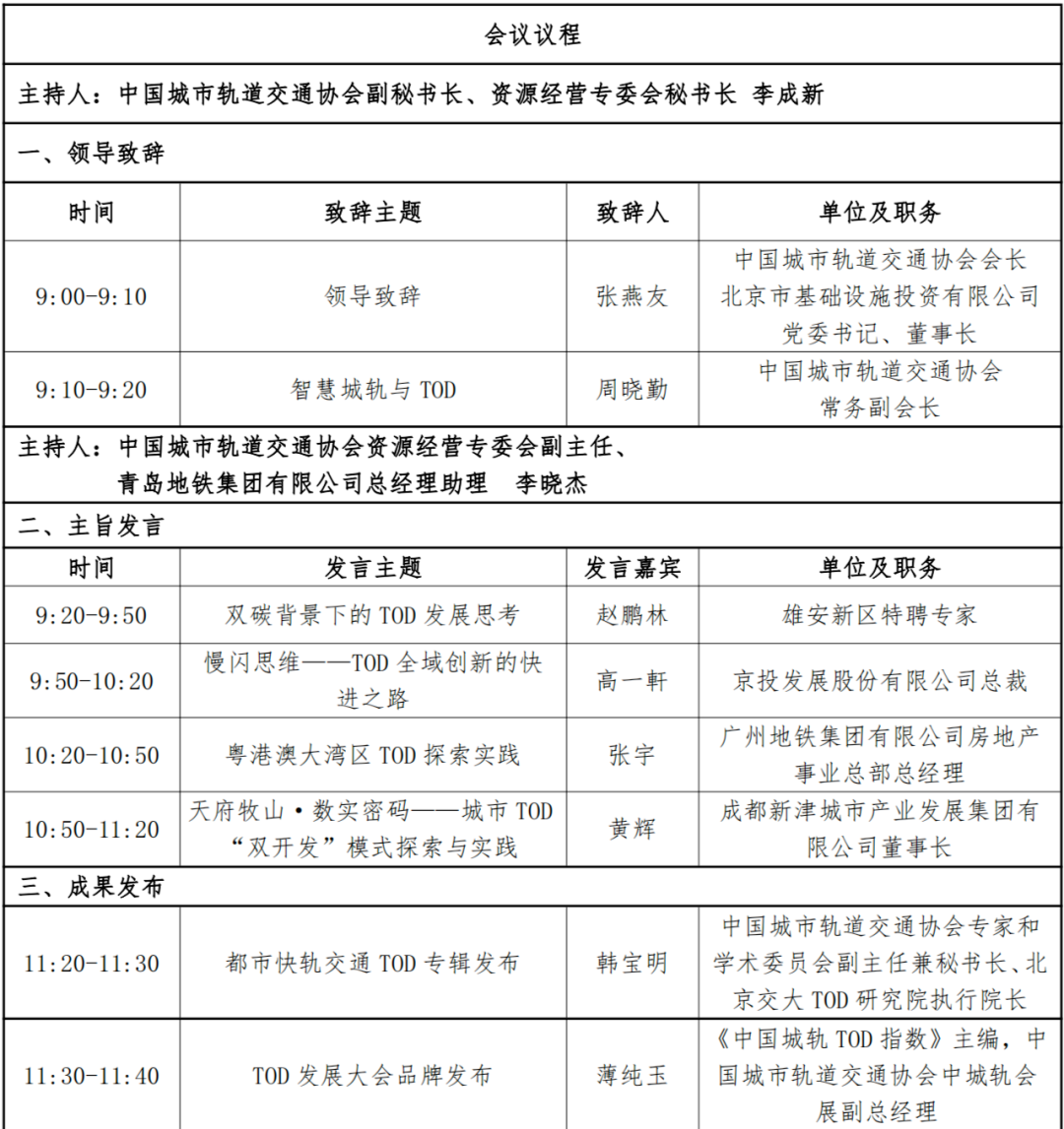 值得一提的是,中国城市轨道交通协会会长、北京市基础设施投资有限公司党委书记、董事长张燕友将出席本次TOD创新论坛并致辞。