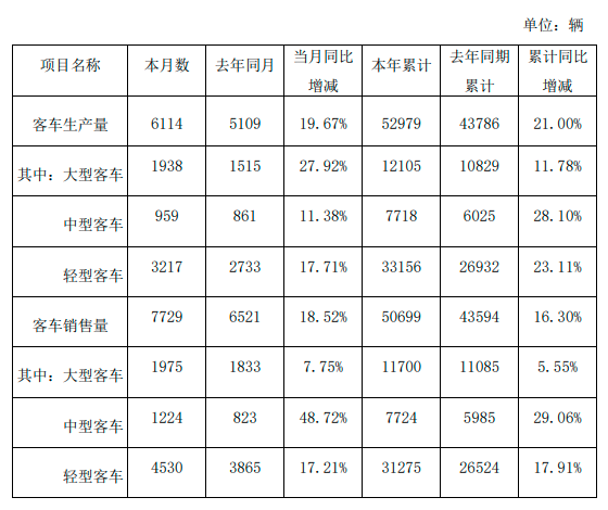1月7日,金龙汽车(SH600686)公告,2021年12月客车生产6114辆,同比增长19.67%,2021年全年生产约5.3万辆,同比增加21%;2021年12月客车销售7729辆,同比增长18.52%,2021年全年销售约5.07万辆,同比增加16.3%。