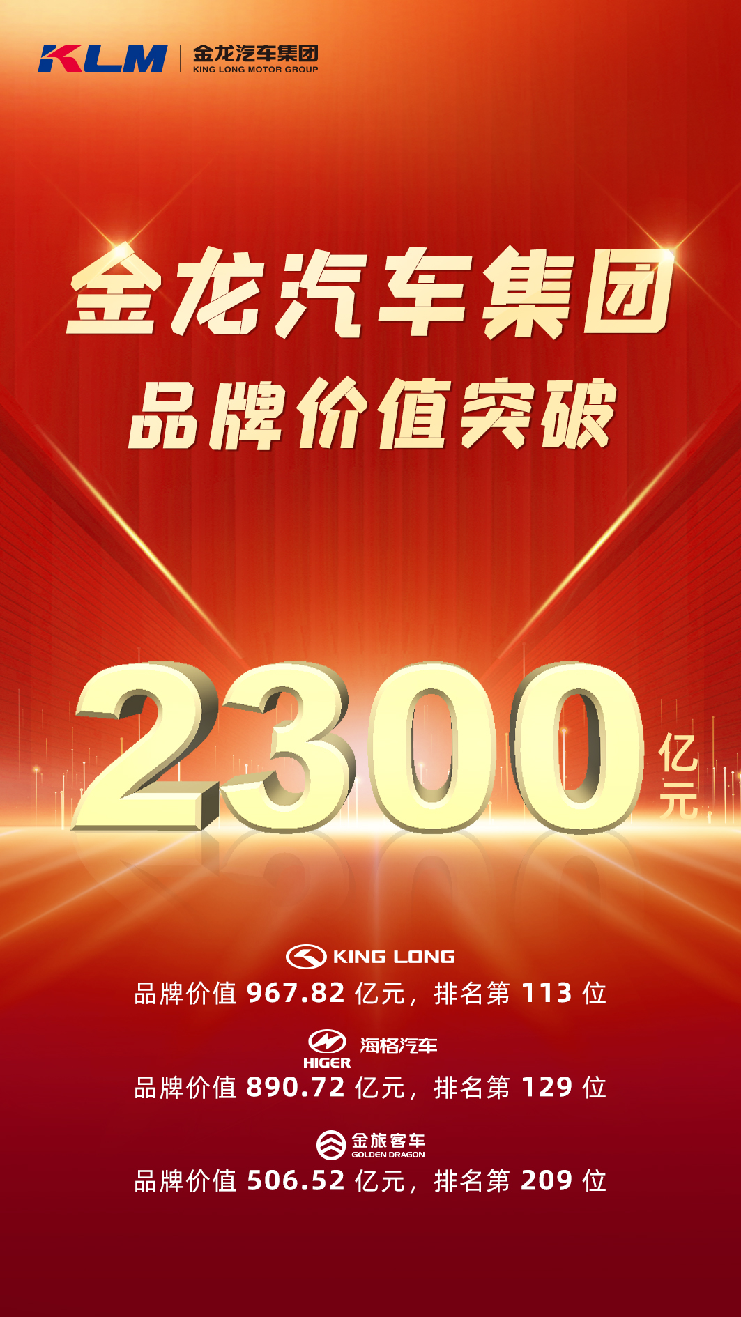 6月19日,由世界品牌实验室(World Brand Lab)主办的第二十一届“世界品牌大会”在北京举行,会上发布了2024年《中国500最具价值品牌》分析报告。金龙汽车集团旗下企业再次光荣上榜,其中金龙客车以967.82亿元排名第113位,海格客车以890.72亿元排名129位,金旅客车以506.52亿元排名209位,三龙品牌价值累计突破2300亿元,相比较2023年品牌价值提升321.24亿元,再度彰显了金龙汽车集团卓越的品牌实力。