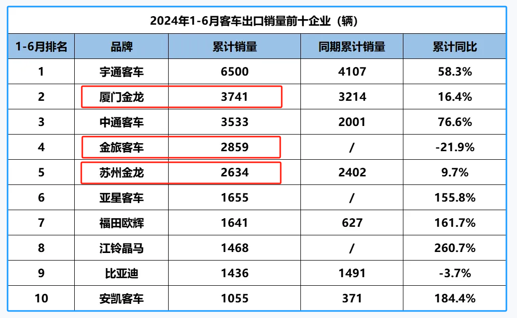 其中金龙汽车、安凯客车都是卖客车的公司,近期,随着客车行业大周期向上,中国客车出口有所好转,2024年1—6月,中国客车出口总量为27551辆,同比增长39.36%。
