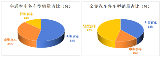 显然,宇通是以大中客车为主,金龙则是主销轻型客车。
