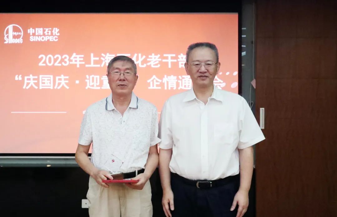 会上,万涛向老领导韩志浩颁发了上海石化优秀共产党员证书。