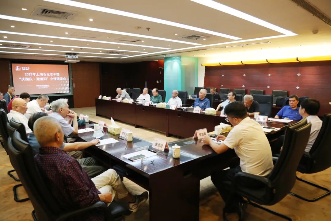 27日上午,上海石化举行老干部“庆国庆?迎重阳”企情通报会。公司党委书记、董事长万涛向老领导们通报了公司今年以来的生产经营及党建工作情况,并祝福大家节日快乐、身体健康、生活愉快、家庭幸福。