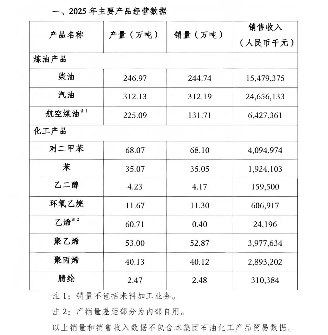 上海石化2025年主要产品经营数据: