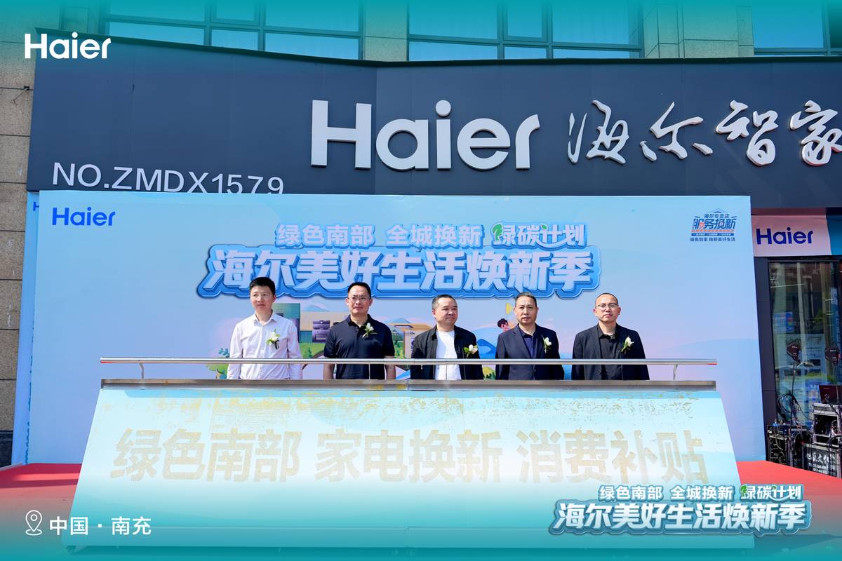 4月12日,由四川省商务厅、南部县商务和经济信息化局指导海尔智家四川分公司主办、南部县天和电器承办的“绿色南部,全城换新海尔美好生活焕新季”,海尔智家拆旧换新战略启动会在南部县盛大召开。出席本次启动会的有南部县商务和经济信息化局相关领导,海尔集团川藏大区首席代表/海尔智家四川分公司总经理肖隆彬,四川海尔三专俱乐部会长万雄,海尔智家四川分公司副总经理零售总经理黄阳松,海尔智家四川分公司副总经理营销总经理张林,海尔乡镇三专俱乐部南充区域会长冯少明以及南部县天和电器有限公司总经理黄金光等嘉宾和消费者。