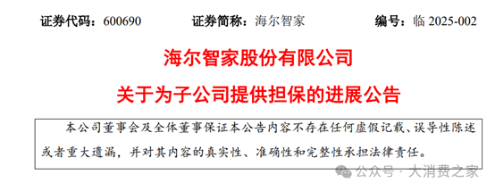 3月4日,海尔智家股份有限公司发布关于为子公司担保进展的公告。