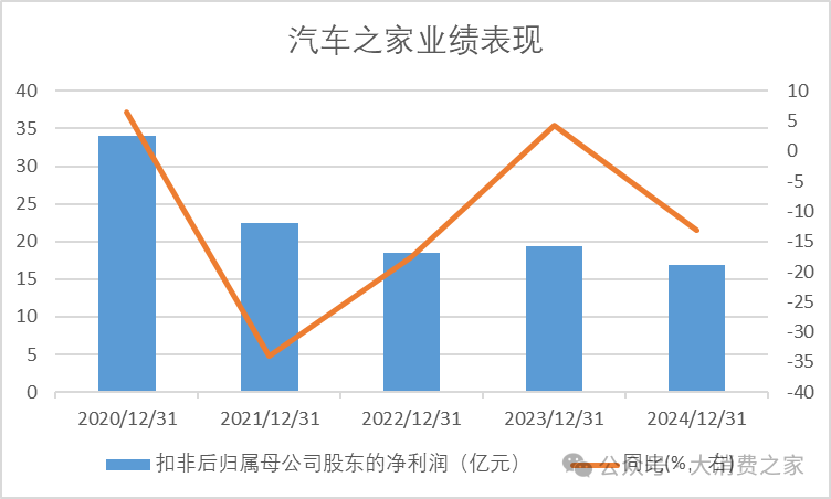 汽车之家主营汽车服务,线上通过汽车消费者在线服务平台不断获得用户增长,根据QuestMobil数据,截至2024年12月汽车之家移动端日活跃用户数达7748万,同比增长13.6%;线下门店总数目前已超150家。但是公司2024年业绩表现不佳,媒体服务收入下滑18.6%,扣非归母净利润也下滑了13.1%。