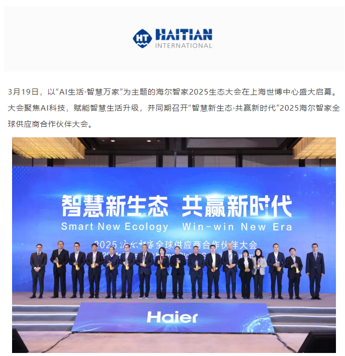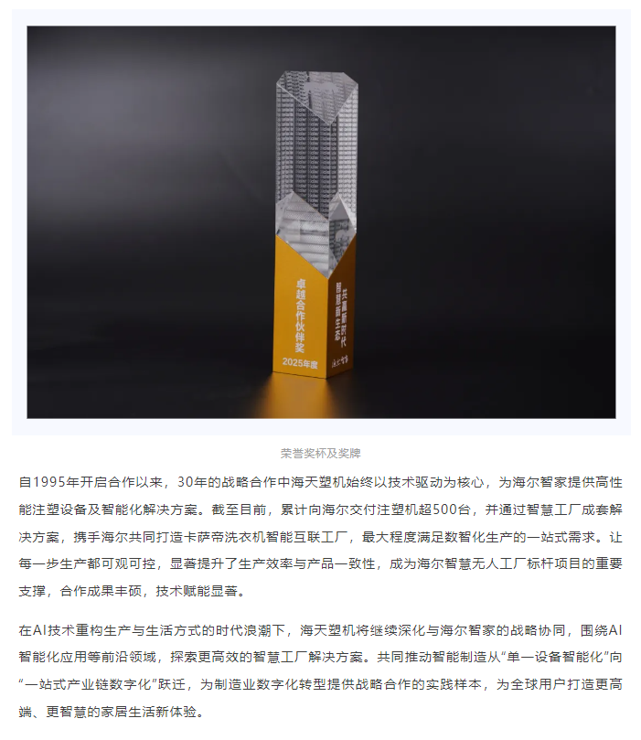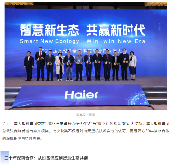 海天塑机再获海尔智家双项殊荣,30年战略合作引领智慧新高度