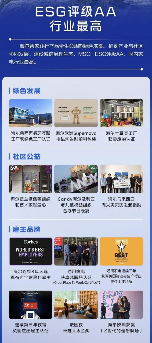 这些只是海尔智家践行ESG理念的一个缩影。从绿色发展到人文关怀,再到公司治理,海尔智家的ESG实践落地有声,赢得众多评级机构的高度认可。