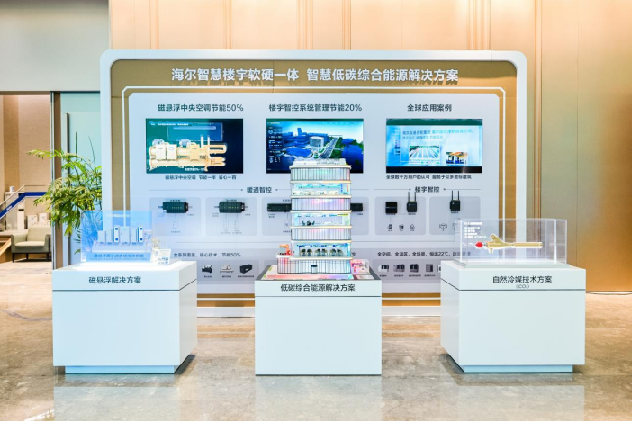 在智慧楼宇场景,海尔智家自主研发的“楼宇大脑”,能结合建筑耗能情况与外部天气变化,实现能源自主分配调节。仅磁悬浮空调方案,已累计节能45亿度电,减少二氧化碳排放约400万吨,相当于种下2.18亿棵树。