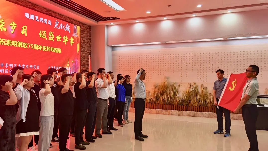 活动中,党员同志们首先来到崇明区档案馆参观“忆峥嵘岁月颂盛世华章——庆祝崇明解放75周年史料专题展”,现场讲解员主要介绍了馆内展出的解放战争及新中国成立以来有关的原版报纸、书籍、亲历者回忆文章、实物等史料,带领大家一起重温崇明人民推翻三座大山、实现民主独立、书写全新篇章的光辉历程。