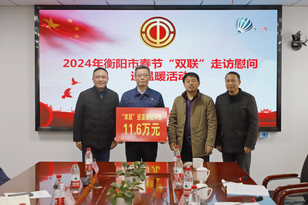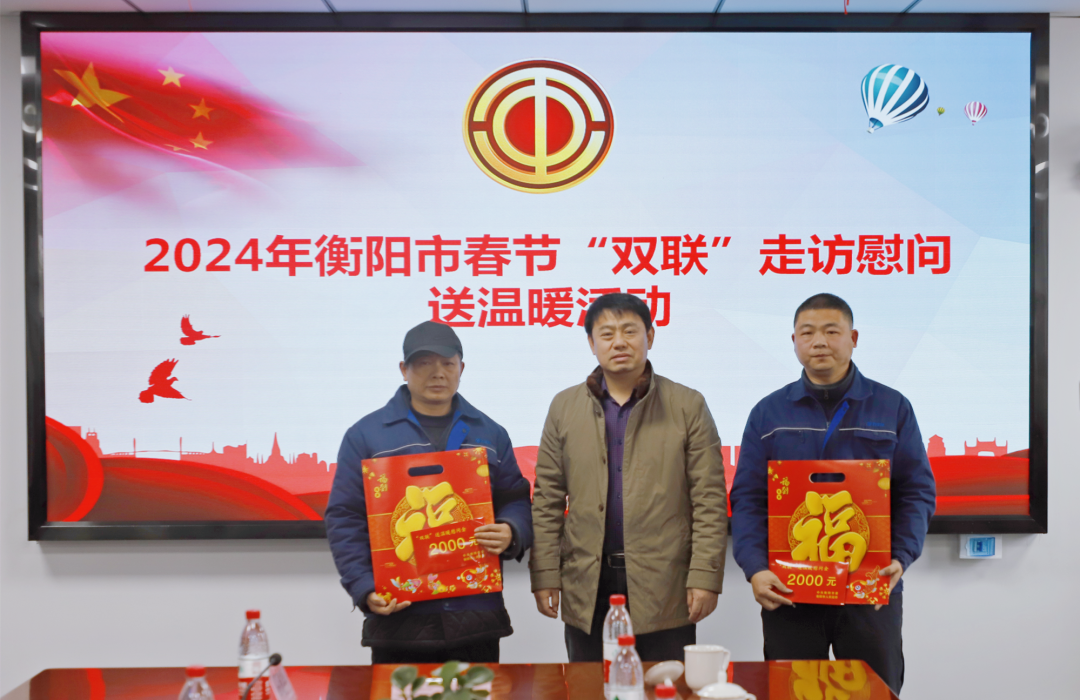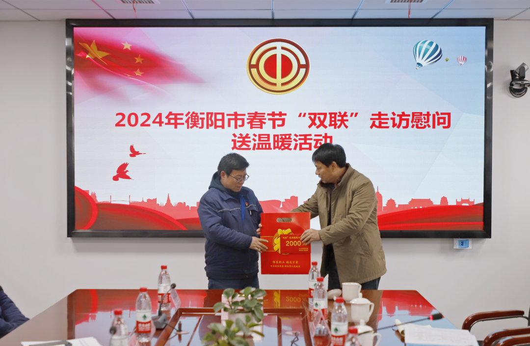 白雪皑皑,暖意融融。1月23日,衡阳市人大常委会副主任、市总工会主席王东文一行7人,到湖南天雁开展2024年春节前“双联”走访慰问“送温暖”活动,送来慰问金11.6万元,并现场慰问1名衡阳市劳动模范、2名困难职工。
