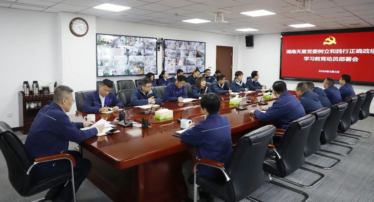 3月5日,湖南天雁党委召开扩大会议,认真学习贯彻习近平总书记关于树立和践行正确政绩观的重要论述,传达学习中央党的建设工作领导小组会议精神、中共中央办公厅《关于在全党开展树立和践行正确政绩观学习教育的通知》精神、国务院国资委党委扩大会议暨党的建设工作领导小组会议精神、中国长安汽车和辰致集团党委学习教育动员部署会精神,研究部署启动树立和践行正确政绩观学习教育工作。党委书记、董事长杨宝全主持会议并讲话,公司领导班子成员、中层管理人员参加会议。