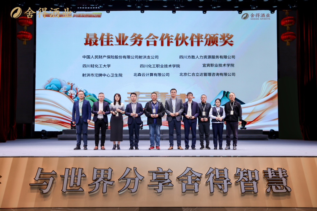 现场,饶家权和赵鹏还向中国人民财产保险股份有限公司射洪支公司、四川方胜人力资源服务有限公司、四川轻化工大学、四川化工职业技术学院、宜宾职业技术学院、射洪市沱牌中心卫生院、北森云计算有限公司和北京仁合立达管理咨询有限公司8个最佳业务合作伙伴颁奖。