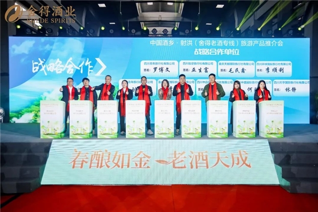 在此次老酒节上,舍得酒业隆重举行了“沱牌舍得酒旅融合线路”产品发布暨签约仪式,联合川蜀风韵景点,推出了文化、工艺、养心、诗酒、康养等不同主题的旅游线路产品,将联动多家知名旅行社,进一步推进酒旅融合,吸引更多旅游爱好者和老酒爱好者探寻中国老酒的魅力。