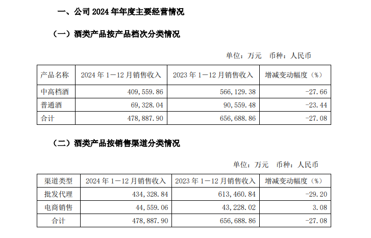 从行业角度来看,整个2024年白酒消费波动比较大,行业竞争进一步加剧。白酒产品销售承压,客户信心仍处于修复阶段,特别是次高端产品消费需求仍待恢复。
