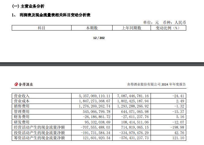 日前,舍得酒业发布2024年财报数据,其中可以窥探出,压力不小!