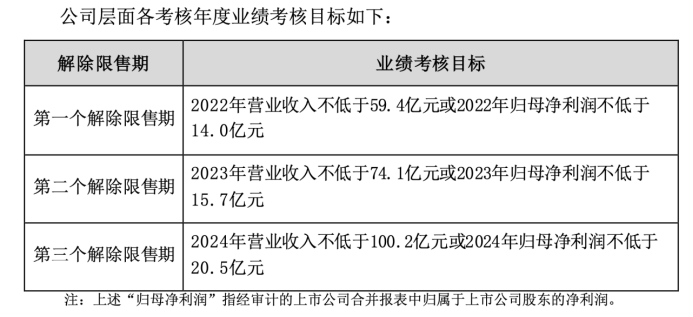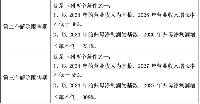 第一个解除限售期:要么2025年的营业收入同比增长超过20%,要么归母净利润增长不低于164%。